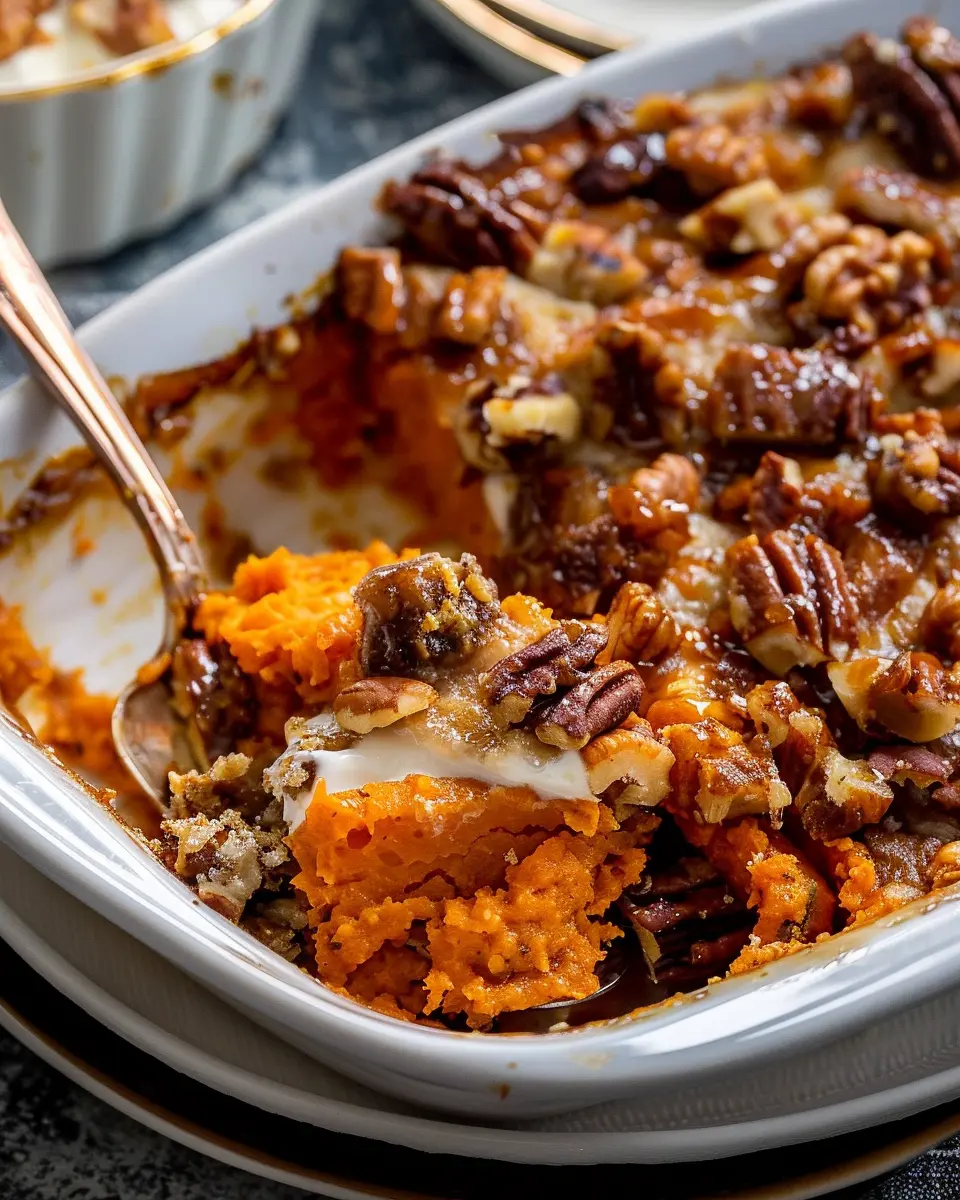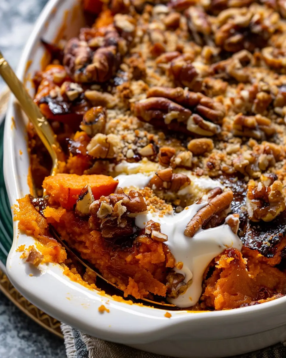 - Layered Look: Serve it in a clear dish to showcase the beautiful layers of sweet potatoes and crunchy toppings, enticing your guests before they even dig in.