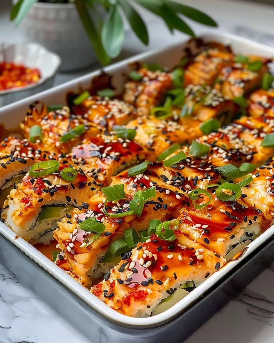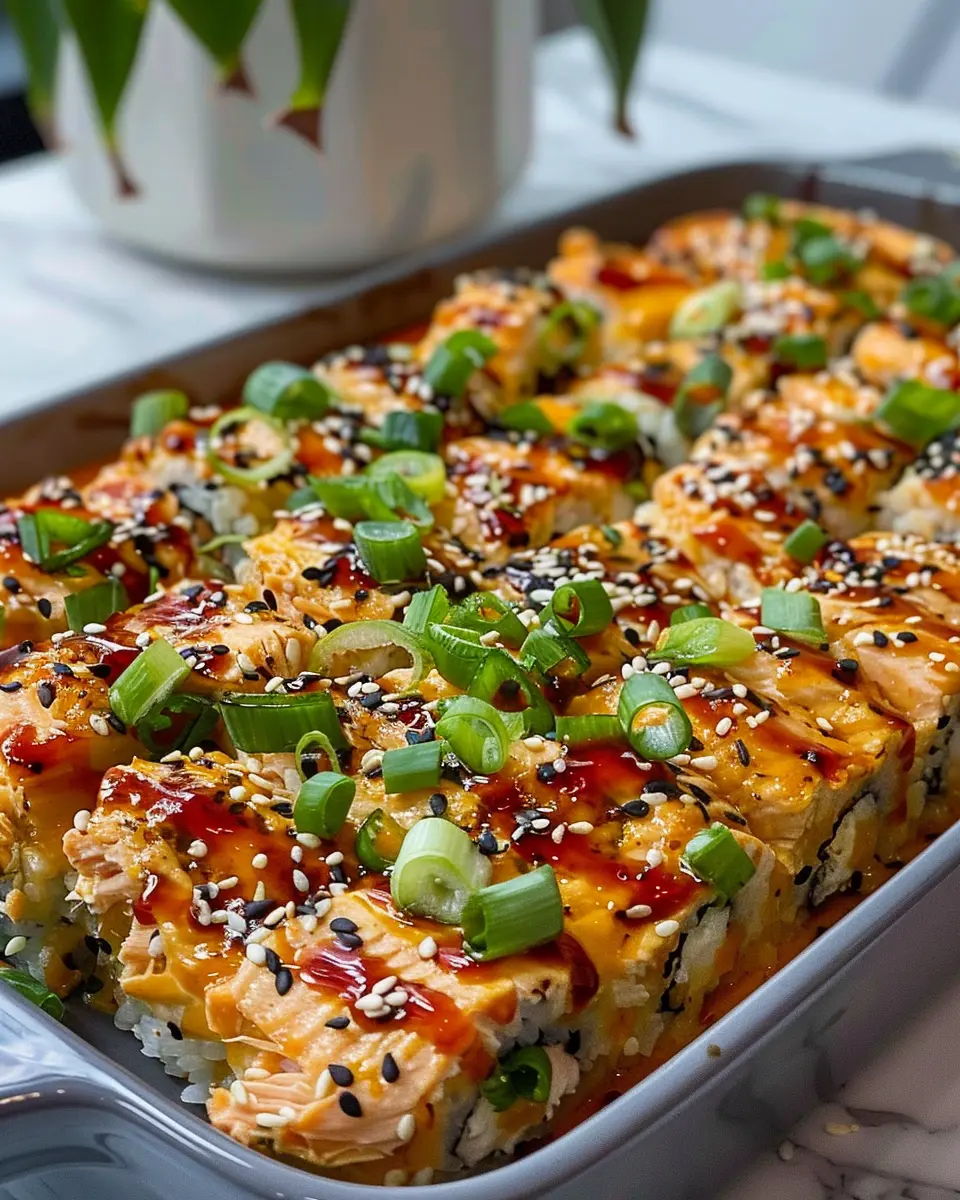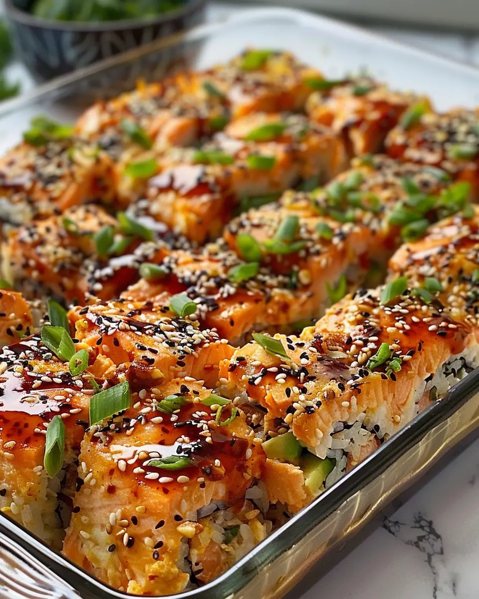 A delicious and easy recipe for Spicy Salmon Sushi Bake that brings the taste of sushi to your home kitchen.