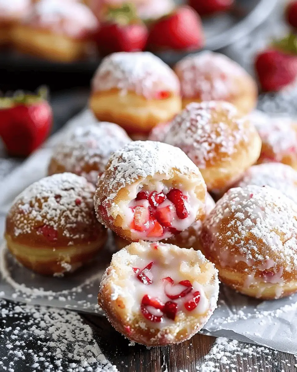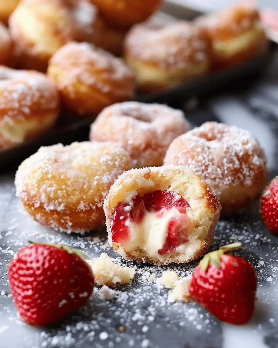 In summary, strawberry cheesecake stuffed donut holes offer a delightful twist on traditional desserts. They perfectly blend the creaminess of cheesecake with the sweetness of strawberries and the warmth of freshly fried donut holes. Not only are they irresistibly tasty, but they’re also a fun surprise at any gathering or brunch. Think about how much easier it is to indulge in a bite-sized treat!