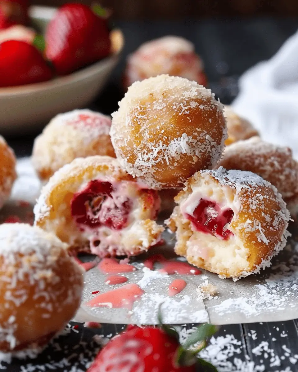 PrintStrawberry Cheesecake Stuffed Donut Holes: Indulgent Sweet Bites