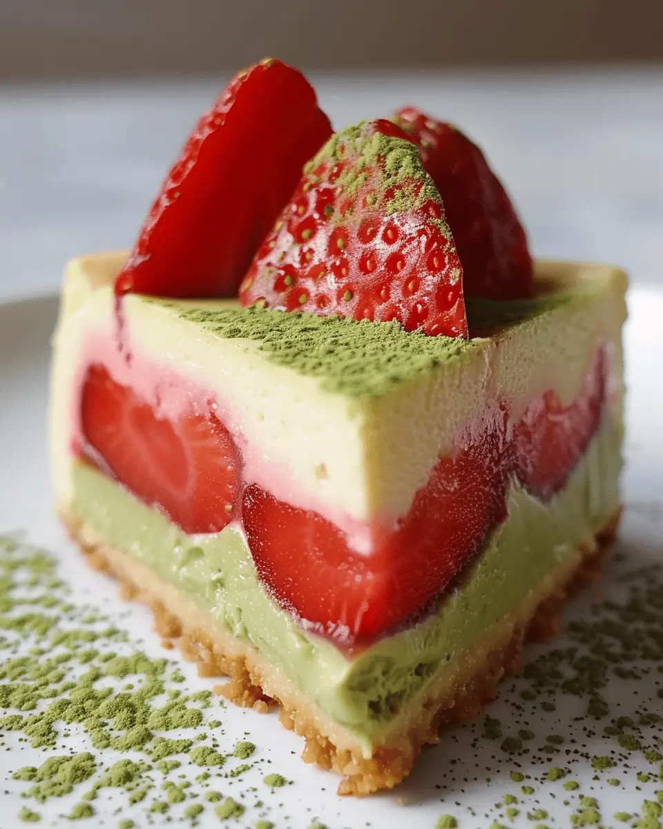 PrintStrawberry Matcha Latte Cheesecake: A Delightfully Indulgent Treat