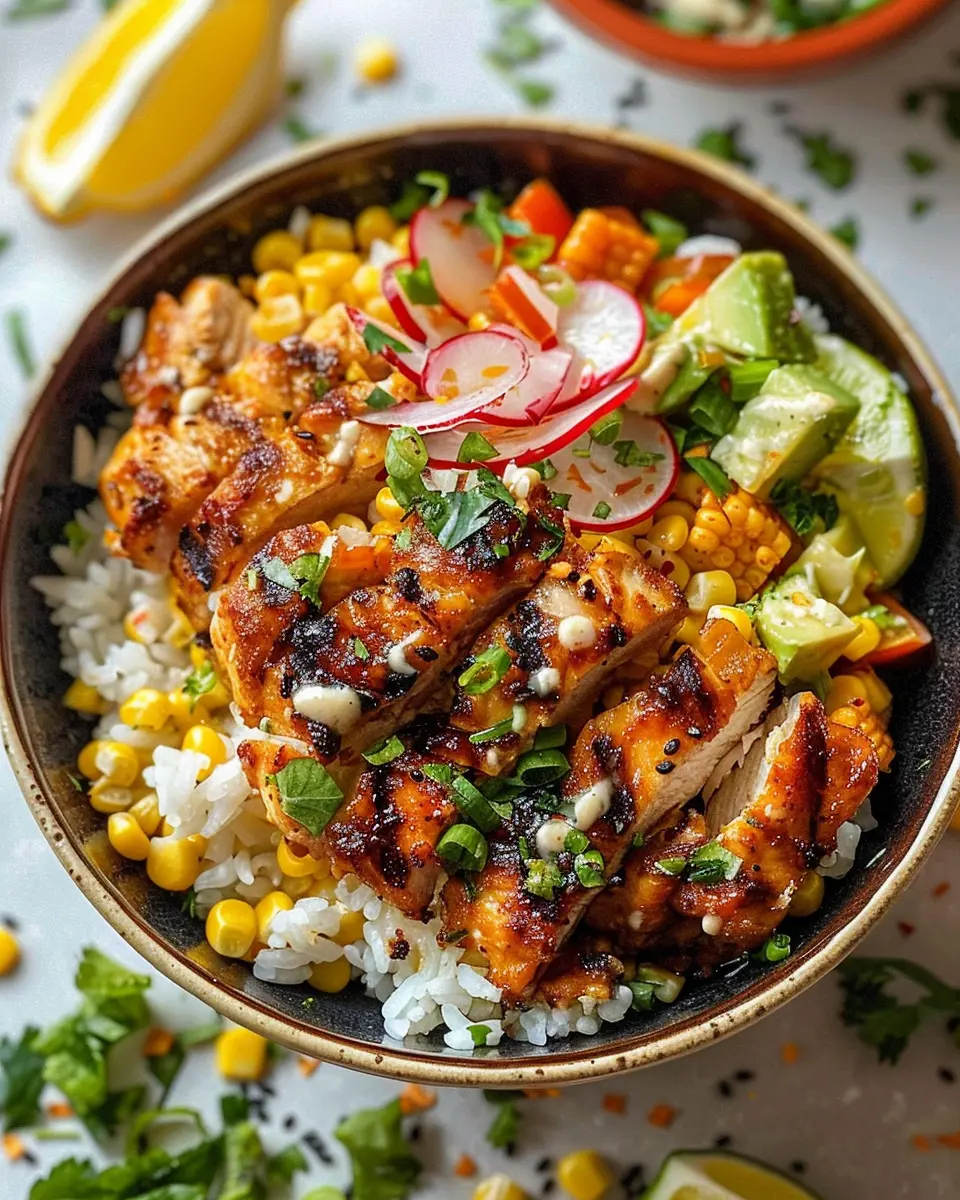 The Street Corn Chicken Rice Bowl is a delightful dish that combines tender chicken, sweet corn, and flavorful rice, creating the ultimate comfort food experience.