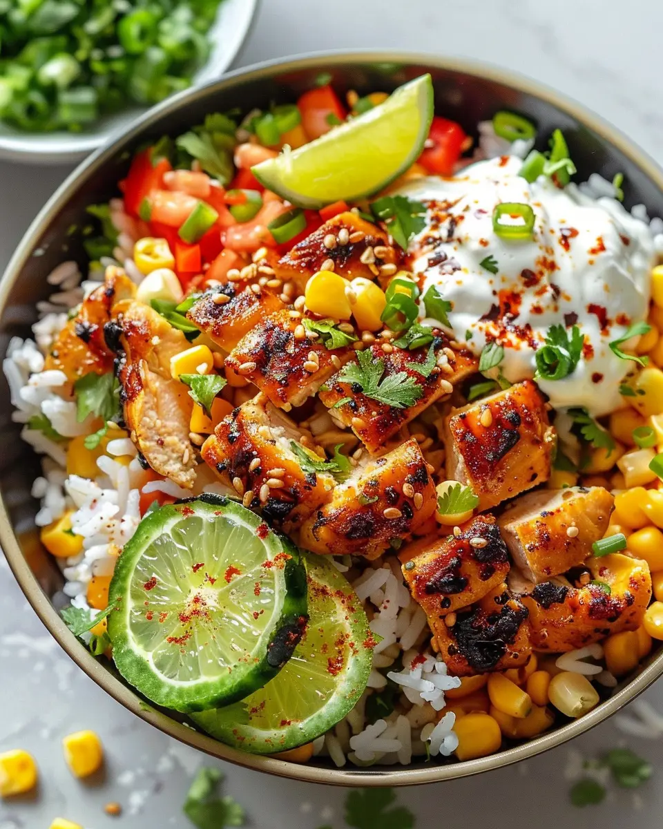 And there you have it! Your street corn chicken rice bowl is not only vibrant but also packed with textures and flavors that will wow your taste buds. Feel free to get creative—add some avocado or sliced jalapeños for an extra flair! Enjoy your culinary creation, and share it with friends for an instant crowd-pleaser.