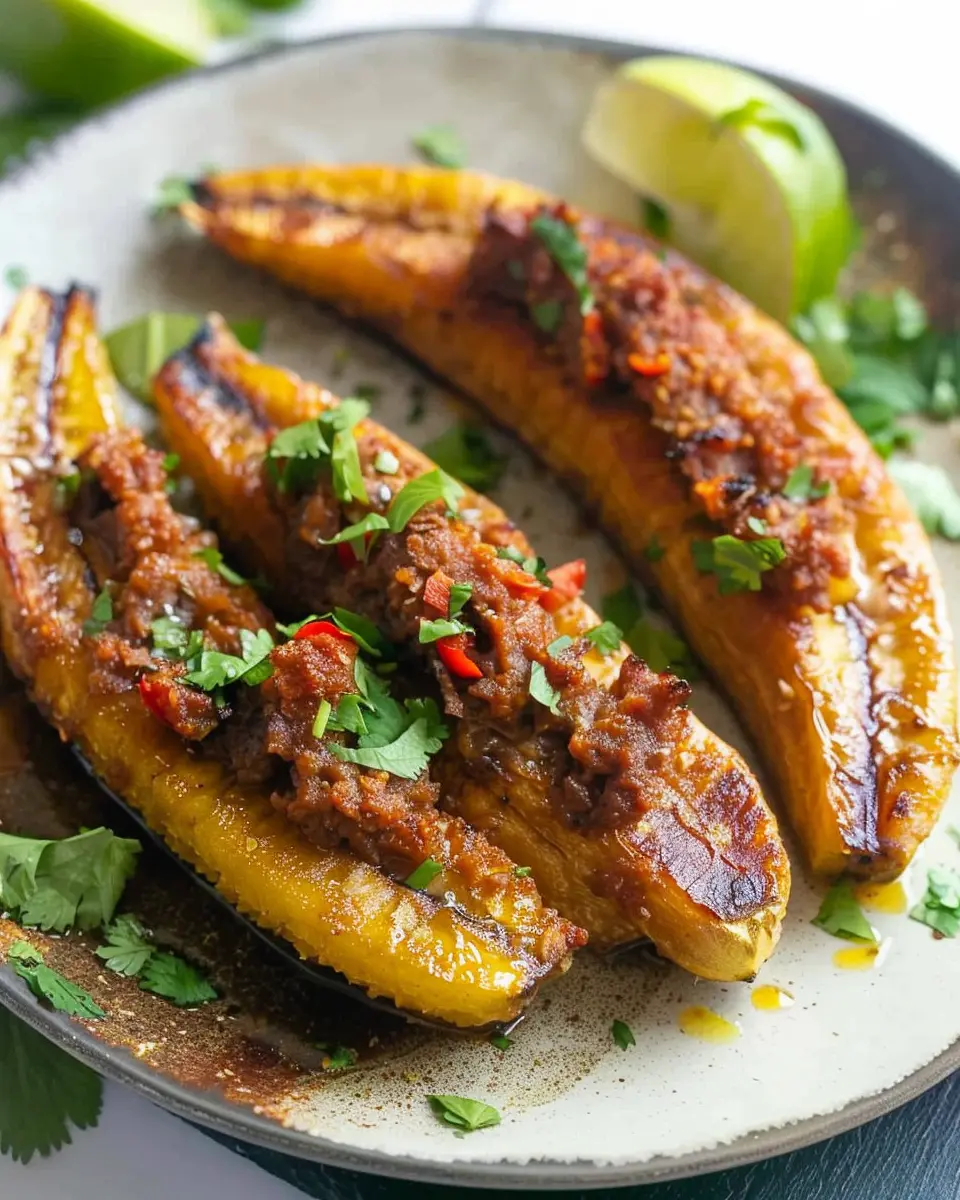 Spicy Stuffed Baked Plantains