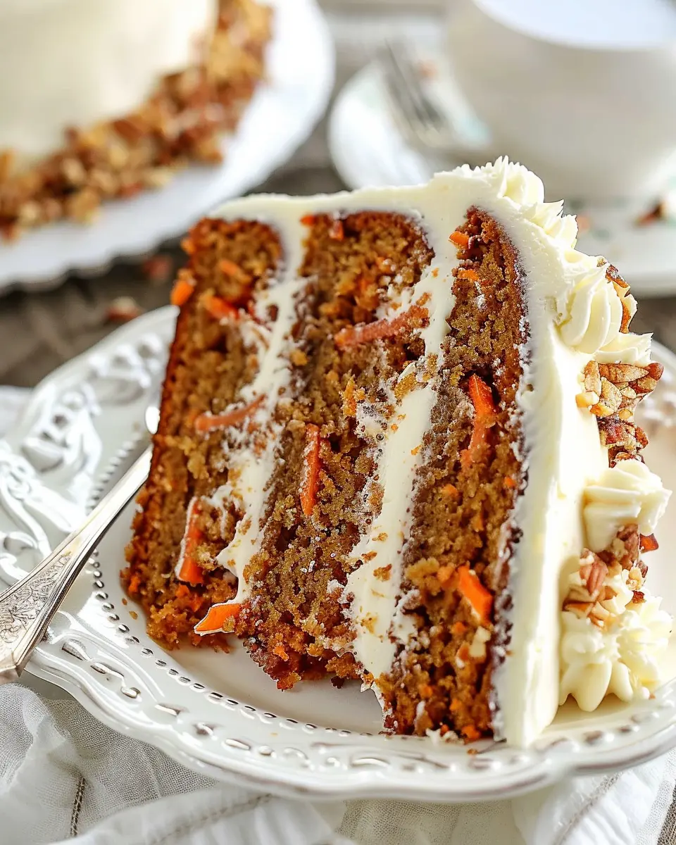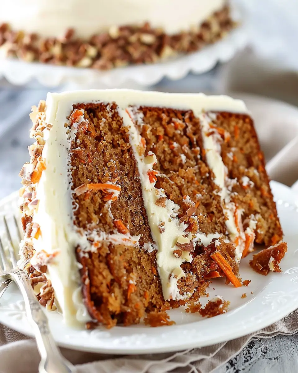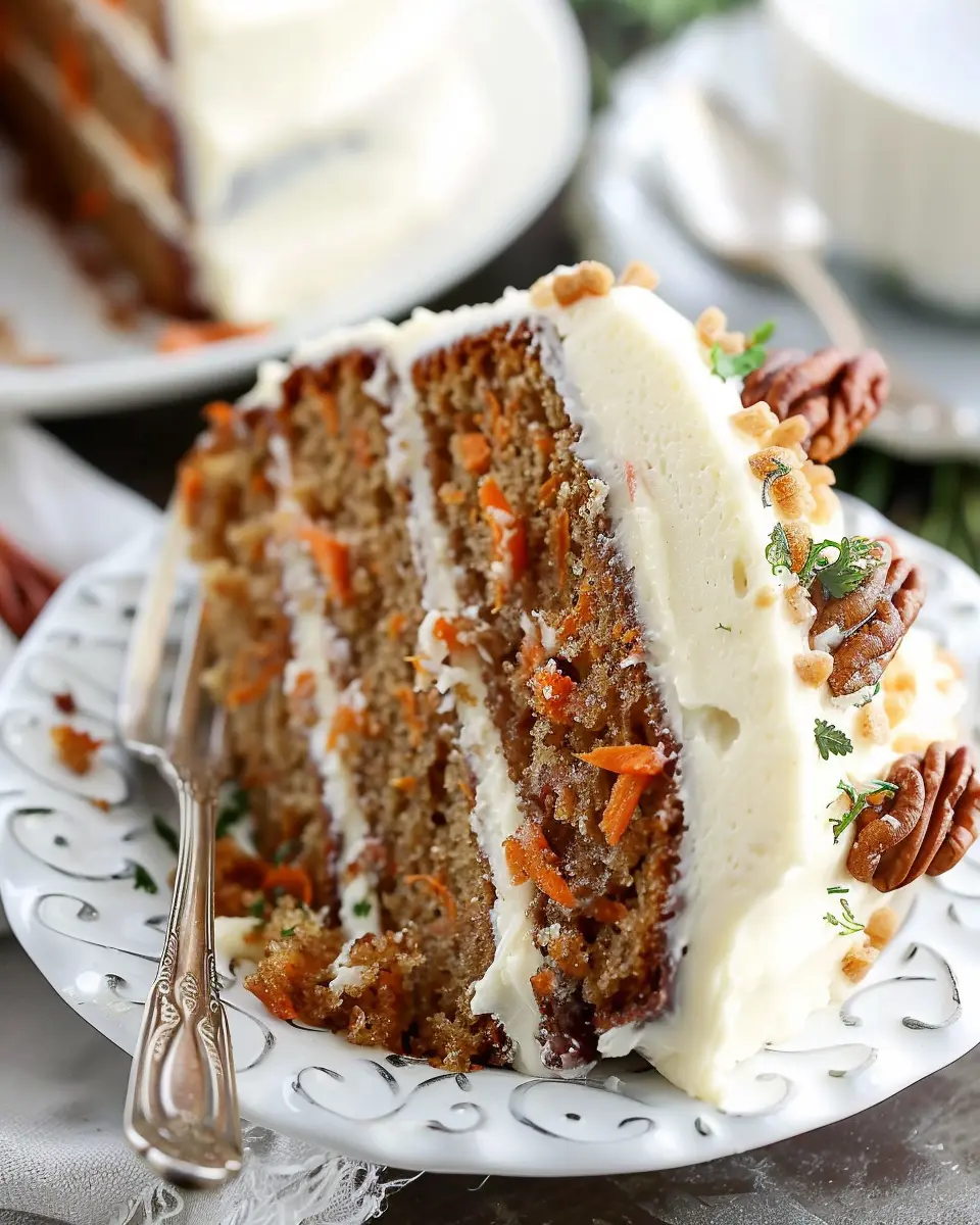 The visual appeal of your dessert can elevate the dining experience. For a stunning presentation, plate your carrot cake on a beautiful cake stand. Top it with a sprinkle of chopped walnuts or pecans and a light dusting of powdered sugar for that extra flair. Add a few edible flowers around the base for color, and you’ll have a cake that not only tastes divine but looks like a work of art!