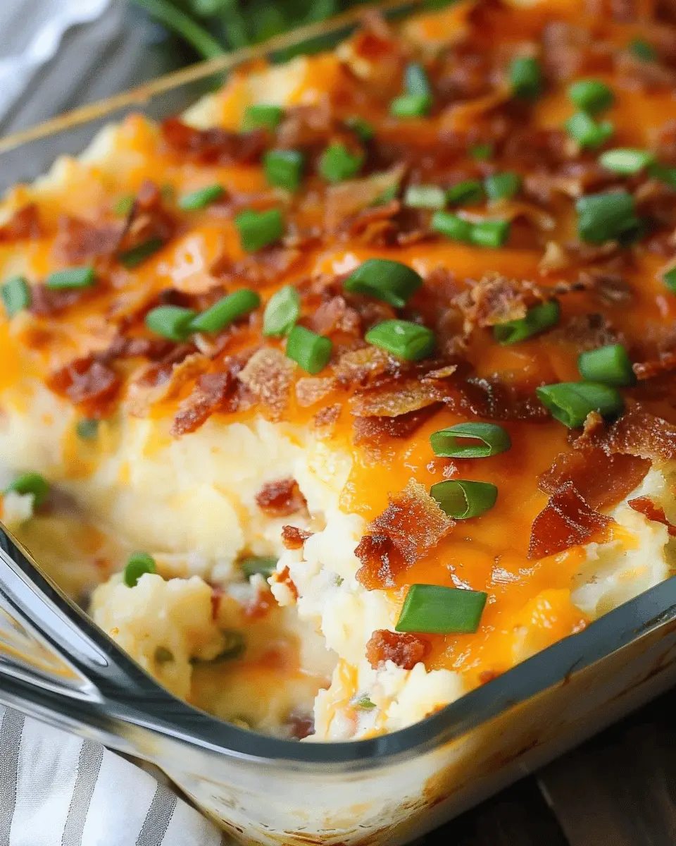 Layer it up: In a greased 9×13-inch baking dish, spread the loaded mashed potato mixture evenly.