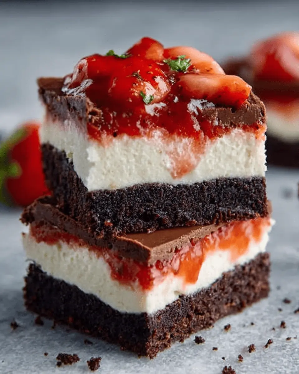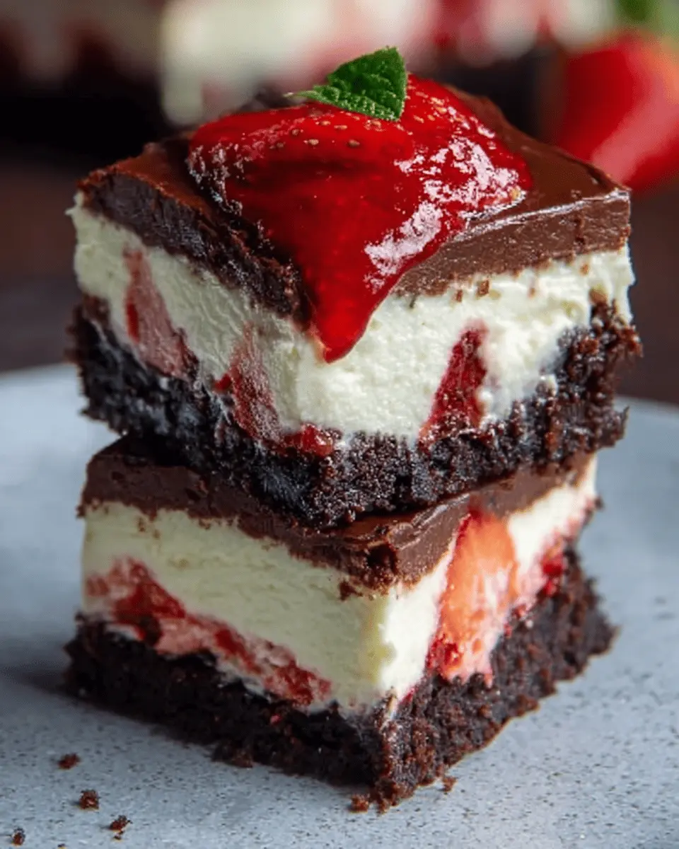 Triple‑Threat Brownie Cheesecake Strawberry Dessert