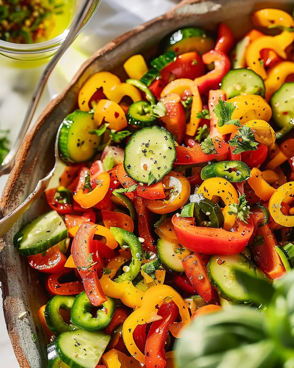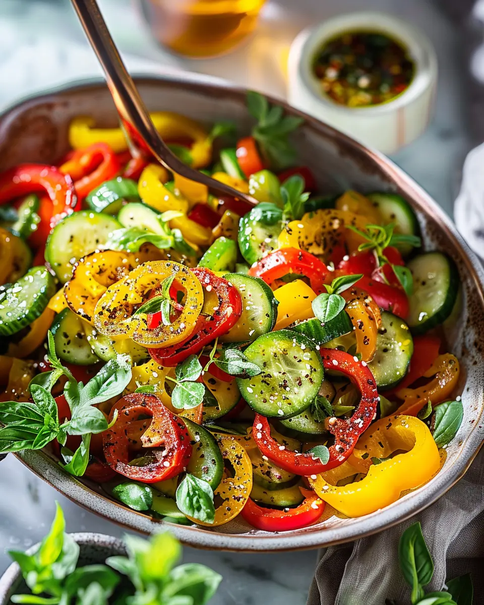 When it comes to elevating your Viral TikTok Cucumber and Bell Pepper Salad Recipe, the dressing you choose can make all the difference! A simple mix of extra virgin olive oil, lemon juice, and a pinch of salt and pepper can enhance the fresh flavors. For a twist, try adding a splash of balsamic vinegar or a dash of honey mustard.