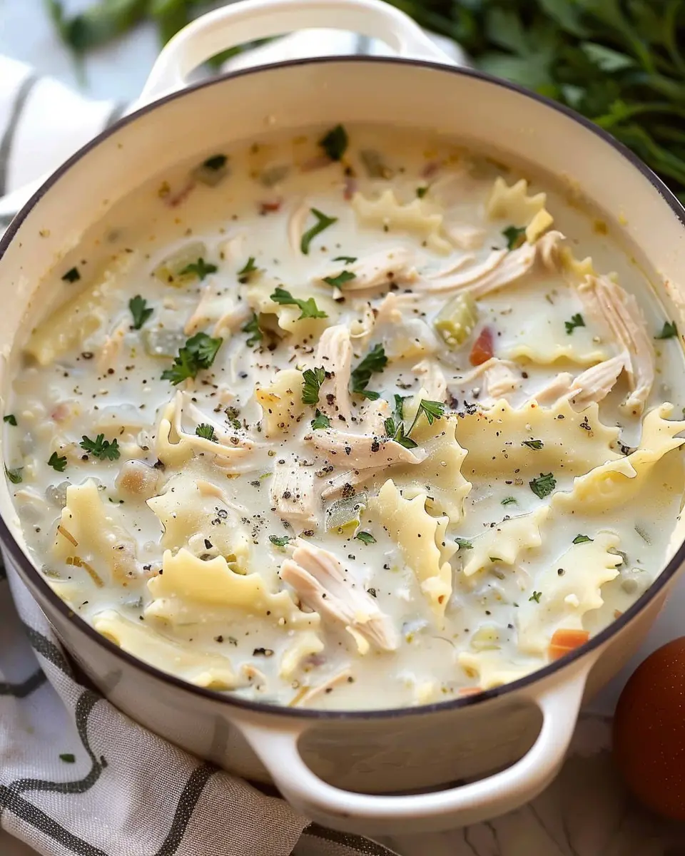 This comforting and easy-to-make White Chicken Lasagna Soup combines creamy broth, tender chicken, and lasagna noodles for a heartwarming meal.