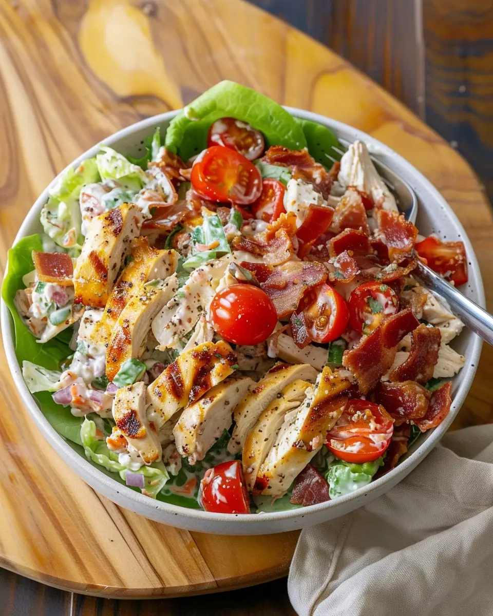 With its blend of flavors and textures—from crunchy veggies to tender chicken and savory turkey bacon—it’s almost impossible to get bored. Plus, it can be stored in the fridge and enjoyed throughout the week. So why not introduce some new lunchtime excitement today?
